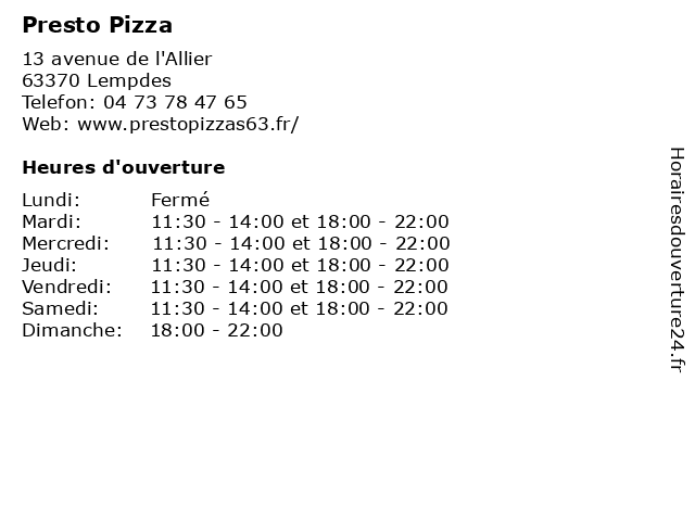 | Vendredi | 11:30-14:00 et 18:00-22:00 |