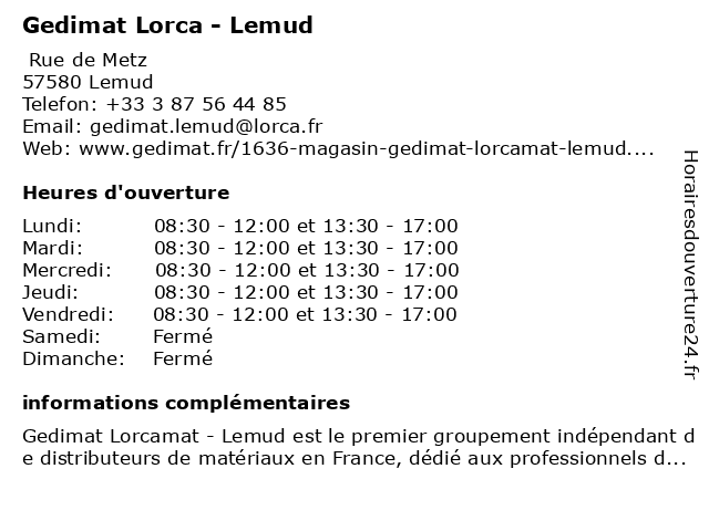1 Gedimat Lorcamat (Distance: 1,95 km) - Route de Metz, 57580 Lemud bricolage, gedimat, lorcamat, matériaux 2 Gedimat Lorcamat (Distance: 12,79 km) n/a ZA la Planchette, 57645 Montoy Flanville cuisine, gedimat, lorcamat, magasin, plein air & loisirs, plomberie, revêtement sols & murs 3 Gedimat Lorcamat - Montoy Flanville (Distance: 12,97 km) Route de Sarrebruck, 57645 Ogy-Montoy-Flanville flanville, gedimat, lorcamat, montoy 4 Gedimat Lorcamat - Rombas (Distance: 33,07 km) 8 Rue des Artisans, 57120 Rombas gedimat, lorcamat, rombas 6 |