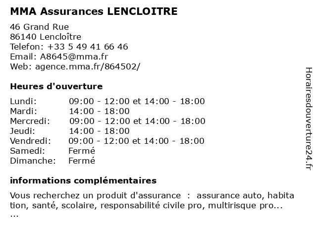 | Lundi | 09:00-12:00 et 14:00-18:00 |