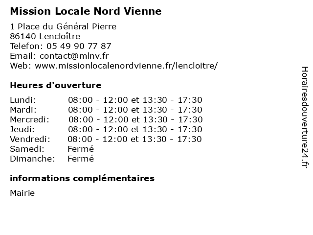 | Mardi | 08:00-12:00 et 13:30-17:30 |