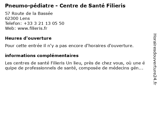 | Appeler Pneumo-pédiatre - Centre de Santé Filieris | |