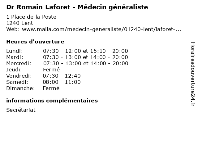 | Lundi | 07:30-12:00 et 15:10-20:00 |