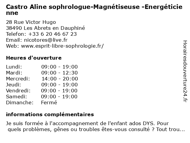 Termes de recherche pour Castro Aline sophrologue-Magnétiseuse -Energéticienne:aline, castro, sophrologue, magnétiseuse, énergéticienne |