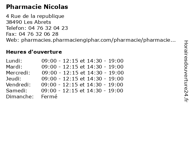 Termes de recherche pour Pharmacie Nicolas:nicolas, pharmacie, services |