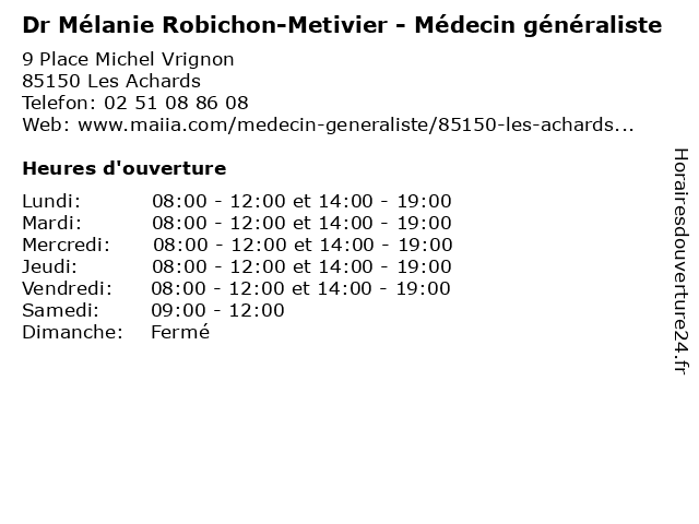 | Lundi | 08:00-12:00 et 14:00-19:00 |