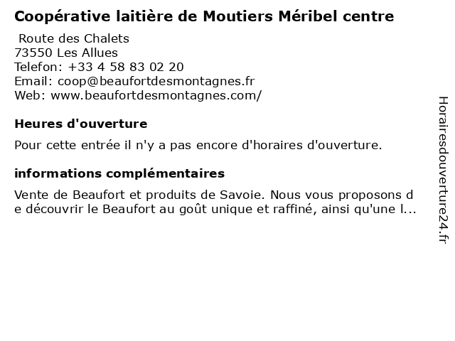 | Appeler Coopérative laitière de Moutiers Méribel centre | |