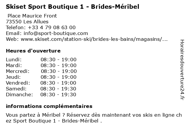 1 Skiset Sport Boutique I (Distance: 0,01 km) Route de la Montée, 73550 Les Allues boutique, location de ski, location de skis, location matériel de ski, location ski, location skis, skiset, sport 2 Sport Boutique (Distance: 0,07 km) Meribel Les Allues Galerie Gen, 73550 Les Allues boutique, cycles, developpement, magasins, sport 3 Skiset Espace Gliss 2 - Brides-Méribel (Distance: 0,31 km) Route de la Montée, 73550 Méribel brides, espace, gliss, location de ski, location de skis, location matériel de ski, location ski, location skis, méribel, skiset 4 Skiset Sport Boutique II (Distance: 0,66 km) Route du Plateau, 73550 Les Allues boutique, ii, location de ski, location de skis, location matériel de ski, location ski, location skis, skiset, sport 5 Boutique Rolex - Doux Joaillier (Distance: 5,67 km) 2 Rue Du Rocher Cœur De Courchevel, 73120 Courchevel boutique, doux, joaillier, rolex 6 |