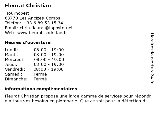 | Samedi | Fermé |