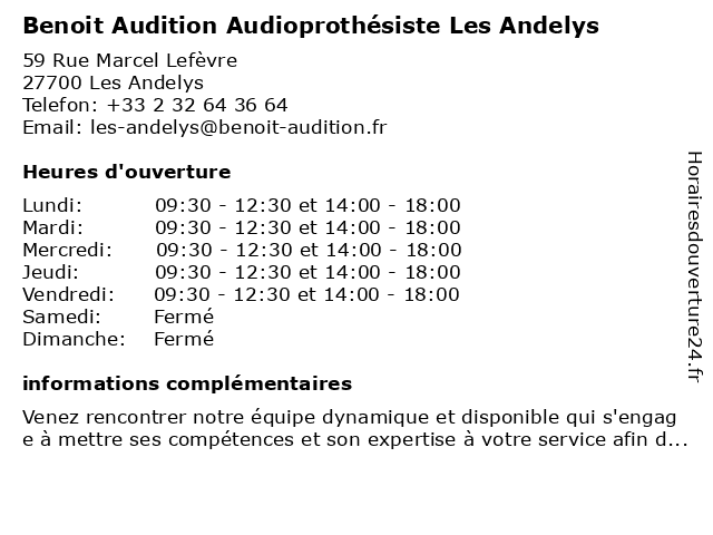 | Mercredi | 09:30-12:30 et 14:00-18:00 |