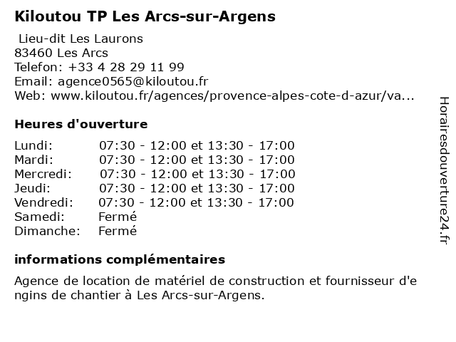 | Lundi | 07:30-12:00 et 13:30-17:00 |