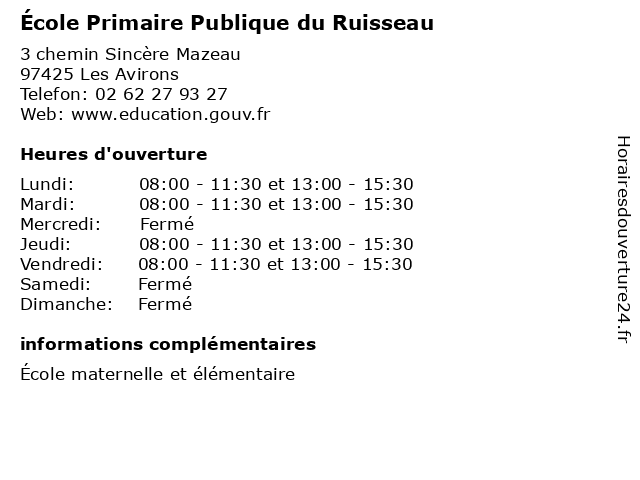 | Mardi | 08:00-11:30 et 13:00-15:30 |