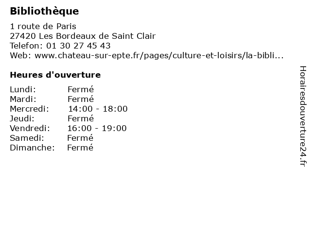 | Samedi | Fermé |
