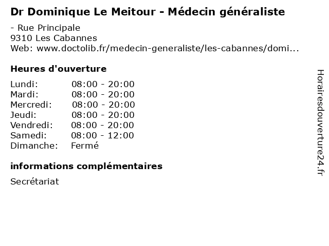 | Lundi | 08:00-20:00 |
