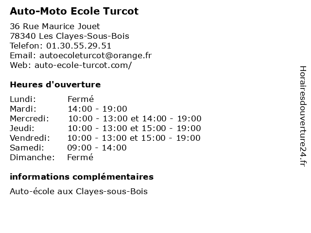 | Mercredi | 10:00-13:00 et 14:00-19:00 |
