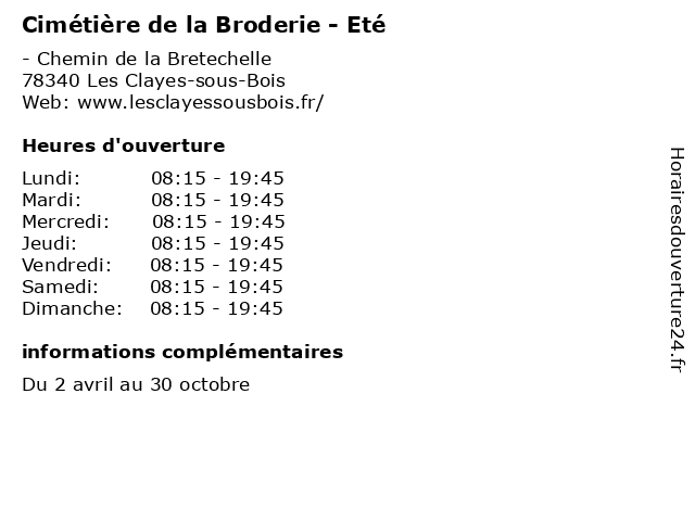 1 Cimétière de la Broderie - Hiver (Distance: 0,00 km) - Chemin de la Bretechelle, 78340 Les Clayes-sous-Bois broderie, cercueil, cimetiere, cimétière, de, deuil, hiver, la, mort 2 Ludimax - Vacances Scolaire - Hors Eté (Distance: 2,18 km) 11 Rue de la Pépinière, 78450 Villepreux congés, enfants, eté, hors, jeux, ludimax, parc de jeux couverts, scolaire, sorties, toboggan, vacances, été 3 Ludimax - Vacances d'Eté - Août (Distance: 2,18 km) 11 Rue de la Pépinière, 78450 Villepreux août, congés, d'aout, d'eté, enfants, jeux, ludimax, mois, parc de jeux couverts, sorties, toboggan, vacances 4 Allo-dechetterie (Eté) (Distance: 7,93 km) - Route Départementale 45, 78630 Orgeval allo, dechetterie, eté, gravats, huiles usées, la réception des déchets et écocentres, les appareils électroménagers, les déchets verts, papier et carton en quantité 5 Allo-dechetterie (Eté) (Distance: 9,04 km) - Avenue Maréchal Joffre, 78320 Mesnil-Saint-Denis allo, dechetterie, eté, gravats, huiles usées, la réception des déchets et écocentres, les appareils électroménagers, les déchets verts, papier et carton en quantité 6 Allo-dechetterie (Eté) (Distance: 9,91 km) - de Guyancourt, 78280 Guyancourt allo, dechetterie, eté, gravats, huiles usées, la réception des déchets et écocentres, les appareils électroménagers, les déchets verts, papier et carton en quantité |