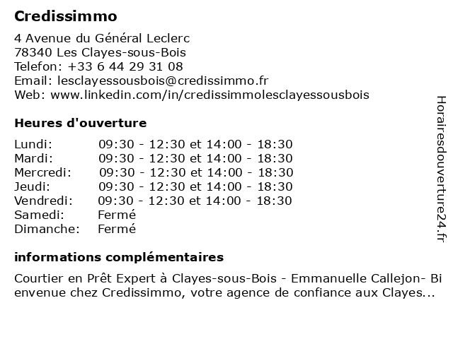 | Mardi | 09:30-12:30 et 14:00-18:30 |