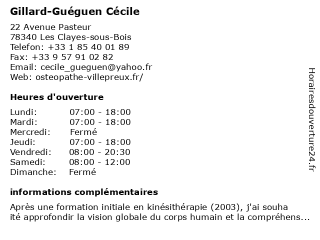 1 Cécile Florent - Masseur-kinésithérapeute (Distance: 4,88 km) 14 Rue Castiglione del Lago, 78190 Trappes consultation, cécile, docteur, dr, florent, kinésithérapeute, masseur, med, médecin, traitement 2 Anne-Cécile Goletto - Sage-femme (Distance: 5,01 km) 50 Avenue Jean Jaurès, 78390 Bois-d'Arcy anne, cécile, femme, goletto, medical, sage, sagefemme 3 Anne-Cécile Martin - Sage-femme (Distance: 5,33 km) 8 Avenue Jean Lurçat, 78330 Fontenay-le-Fleury anne, cecile, cécile, du, femme, martin, maternité, périnée, rééducation, sage, uro-gynécologique 4 Cécile Daudin - Ostéopathe - secrétariat (Distance: 10,55 km) 7 Square Jasmin, 78150 Le Chesnay consultation, cécile, daudin, docteur, med, médecin, médecine, ostéopathe, secrétariat, traitement 5 Cécile Dazelle - Sage-femme (Distance: 11,32 km) 10 Rue Du Champ Gaillard, 78300 Poissy cecile, consultation, cécile, dazelle, docteur, dr, femme, med, médecin, sage, traitement 6 Dr Cécile Yakoleff - Pédiatre (Distance: 11,32 km) 10 rue du Champ Gaillard, 78300 Poissy bebe, ch, cécile, dr, en, germain, intercommunal, laye, nourisson, poissy, poissy/saint, pédiatre, pédiatrie, yakoleff |