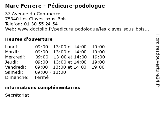 | Lundi | 09:00-13:00 et 14:00-19:00 |