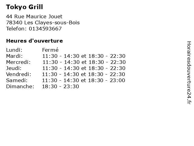 | Mardi | 11:30-14:30 et 18:30-22:30 |