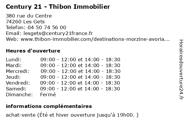1 Century 21 - Thibon Immobilier (Distance: 0,49 km) 541 rue du Centre, 74260 Les Gets 21, agence, century, gestion, immobilier, location, thibon, vente 2 Club Le Viking (Belambra) - Du 7 juillet au 25 août et du 23 décembre au 21 avril (Distance: 3,17 km) - Téléphérique du Pleney, 74110 Morzine 21, 23, 25, août, au, avril, belambra, club, du, décembre, et, hebergement, hotel, juillet, le, tourisme, viking 3 Century 21 Call Home (Distance: 3,27 km) 614 Avenue de Joux Plane, 74110 Morzine 21, call, century, home 4 Nicolas Thibon Immobilier (Distance: 3,41 km) 61 Route de La Plagne, 74110 Morzine agence, immobilier, location, nicolas, thibon, transaction, vente 5 Century 21 - La Chapelle Immobilier (Distance: 17,55 km) 56 rue de Linga, 74360 Chatel 21, achat, agence, agent, bailleur, century, chapelle, gestion, immobilier, immobiliere, la, location, logement, logements 6 LB Immobilier (Distance: 0,39 km) 449 rue du Centre, 74260 Les Gets achat, agence, appartements, immobilier, lb, location, maisons, vente |