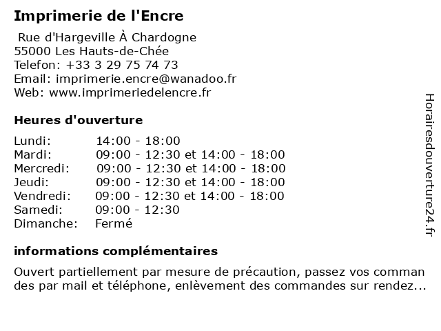 | Mardi | 09:00-12:30 et 14:00-18:00 |