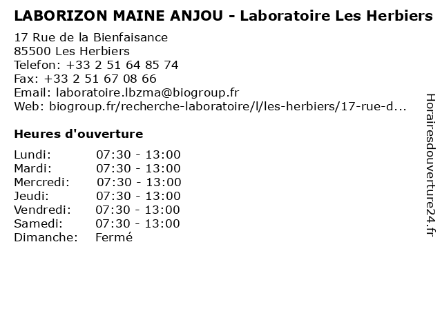 1 Laboratoire AZbio (Distance: 0,05 km) 17 Rue de la bienfaisance, 85500 Les herbiers azbio, bureau, consultation, dr, laboratoire, maladie, med, médecin, médecine, pratique, thérapie, traitement 2 Laboratoire SEVRE BIOLOGIE de Les Herbiers (Distance: 0,15 km) 41 Grande Rue, 85500 Les Herbiers biologie, de, herbiers, laboratoire, les, sevre 3 BIOGROUP LABORIZON BIORYLIS - Laboratoire Les Herbiers (Distance: 0,22 km) 19 Place Des Droits De L'homme, 85500 Les Herbiers biogroup, biorylis, dépistages, herbiers, laboratoire, laboratoire de diagnostic, laborizon, les 4 Anjou Automation (Distance: 13,96 km) 880 Rue Léo Baekeland, 85290 Mortagne-sur-Sèvre anjou, automation, automatisme, horticole, maraîchère, régulation, serre, équipements 5 Laboratoire SEVRE BIOLOGIE de Mortagne sur sèvre (Distance: 14,86 km) 1 Rue du Soleil Levant, 85290 Mortagne-sur-Sèvre biologie, de, laboratoire, mortagne, sevre, sur, sèvre 6 Laboratoire SEVRE BIOLOGIE de Pouzauges (Distance: 16,80 km) 41 Rue Joachim Rouault, 85700 Pouzauges biologie, de, laboratoire, pouzauges, sevre |