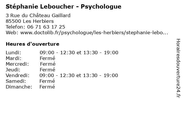 | Vendredi | 09:00-12:30 et 13:30-19:00 |