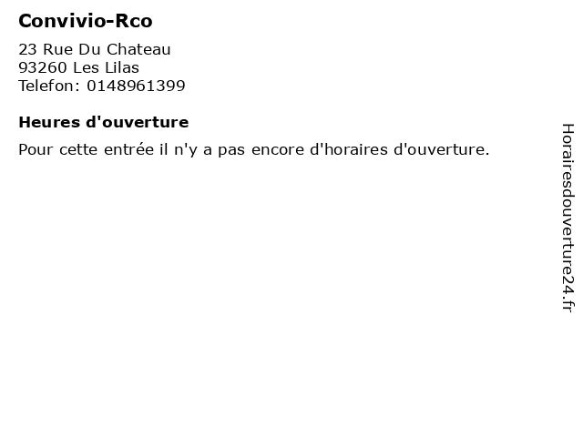 1 Convivio-Rco (Distance: 7,93 km) 6 Rue De l Eglise, 94340 Joinville Le Pont convivio, rco, restaurants 6 Convivio-Rco (Distance: 10,16 km) 70 Avenue Du General De Gaulle, 94022 Creteil Cedex convivio, rco, restaurants |
