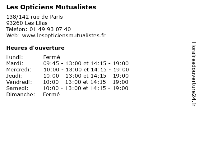 | Mercredi | 10:00-13:00 et 14:15-19:00 |