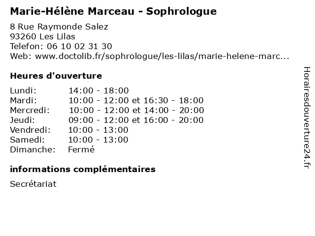 | Mercredi | 10:00-12:00 et 14:00-20:00 |