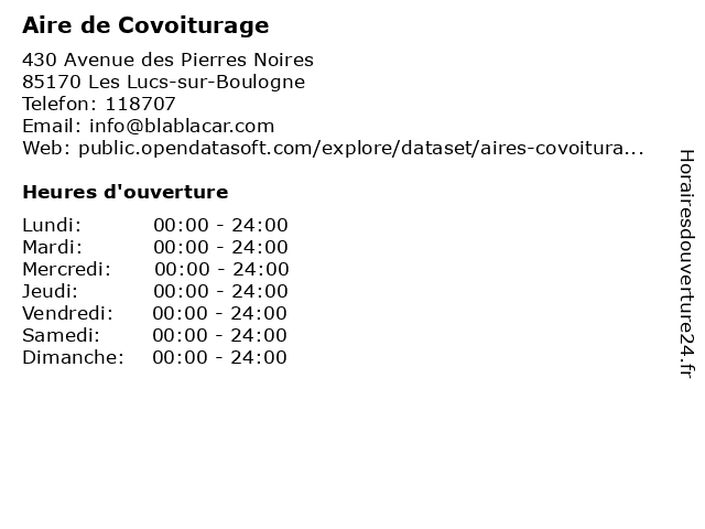 1 Aire de Covoiturage (Distance: 0,66 km) 967 Rue Travot, 85170 Les Lucs-sur-Boulogne aire, covoiturage, de, partager, trajets 2 Aire de Covoiturage (Distance: 5,42 km) - Aire de covoiturage de Tournebride, 85170 Beaufou aire, covoiturage, de, partager, trajets 3 Aire de Covoiturage (Distance: 8,33 km) 26 Rue de la Martelle, 85170 Le Poiré-sur-Vie aire, covoiturage, de, partager, trajets 4 Aire de Covoiturage (Distance: 8,54 km) 1 Place de l'Église, 85170 Le Poiré-sur-Vie aire, covoiturage, de, partager, trajets 5 Aire de Covoiturage (Distance: 10,51 km) 4 Rue de la Roche, 85620 Rocheservière aire, covoiturage, de, partager, trajets 6 Aire de Covoiturage (Distance: 11,00 km) 623 Rue des Alouettes, 85620 Rocheservière aire, covoiturage, de, partager, trajets |