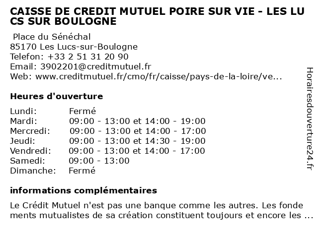 Termes de recherche pour CAISSE DE CREDIT MUTUEL POIRE SUR VIE - LES LUCS SUR BOULOGNE:sur, les, de, boulogne, vie, crédit, mutuel, caisse, lucs, poiré |