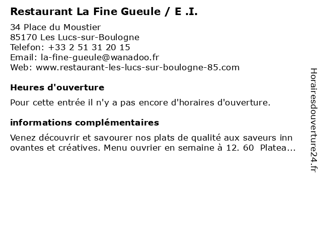 | Appeler Restaurant La Fine Gueule / E .I. | |
