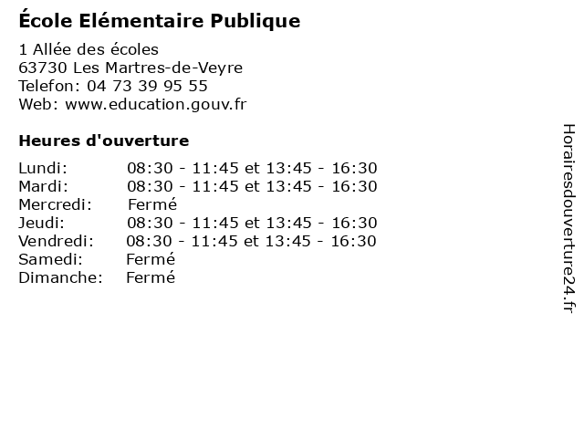 | Mardi | 08:30-11:45 et 13:45-16:30 |