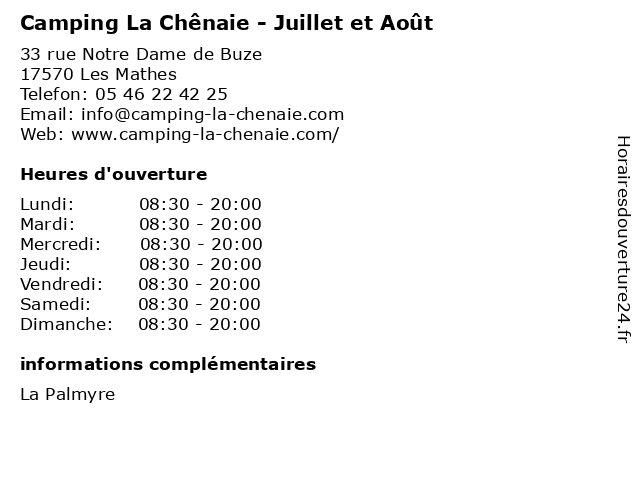 | Samedi | 08:30-20:00 |