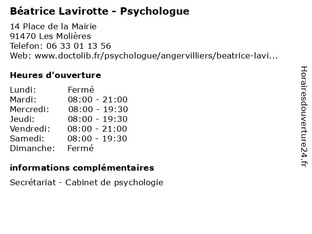 | Mercredi | 08:00-19:30 |