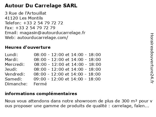 | Samedi | 09:00-12:00 et 14:00-18:00 |