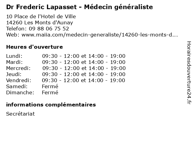 | Mardi | 09:30-12:00 et 14:00-19:00 |