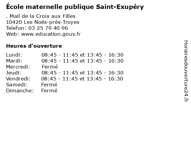 | Mercredi | Fermé |