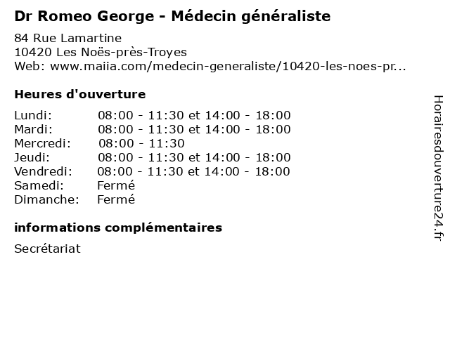 | Lundi | 08:00-11:30 et 14:00-18:00 |