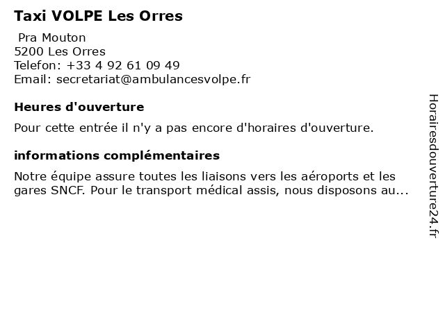 6 Taxi VOLPE Embrun (Distance: 9,22 km) Avenue Charles de Gaulle, 05200 Embrun embrun, taxi, volpe |