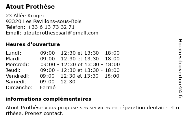 | Lundi | 09:00-12:30 et 13:30-18:00 |