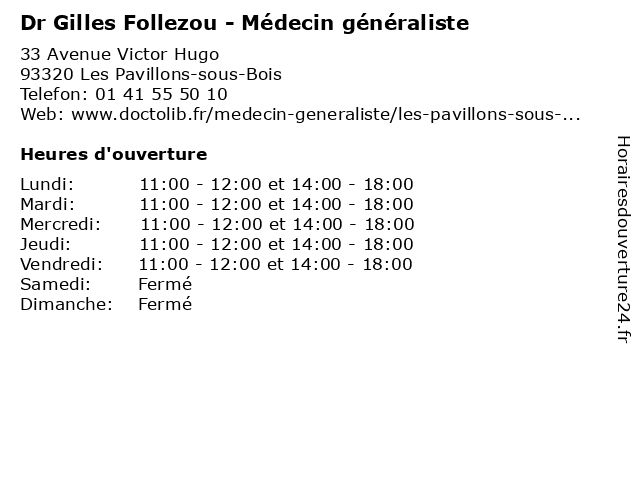 | Mercredi | 11:00-12:00 et 14:00-18:00 |