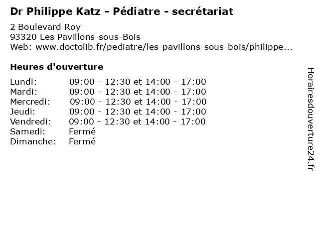 | Lundi | 09:00-12:30 et 14:00-17:00 |
