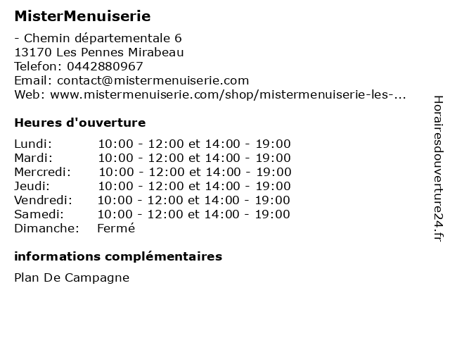 Lundi | 10:00-12:00 et 14:00-19:00 |