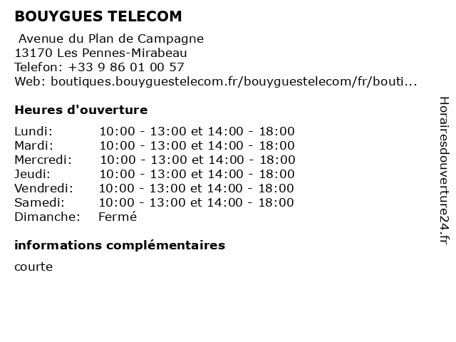 | Lundi | 10:00-13:00 et 14:00-18:00 |