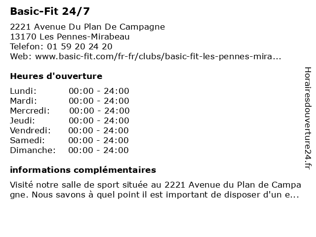 3 Basic-Fit 24/7 (Distance: 11,09 km) 1176 Avenue Guillaume Du Vair, 13080 Aix-en-Provence 24/7, basic, fit 6 |