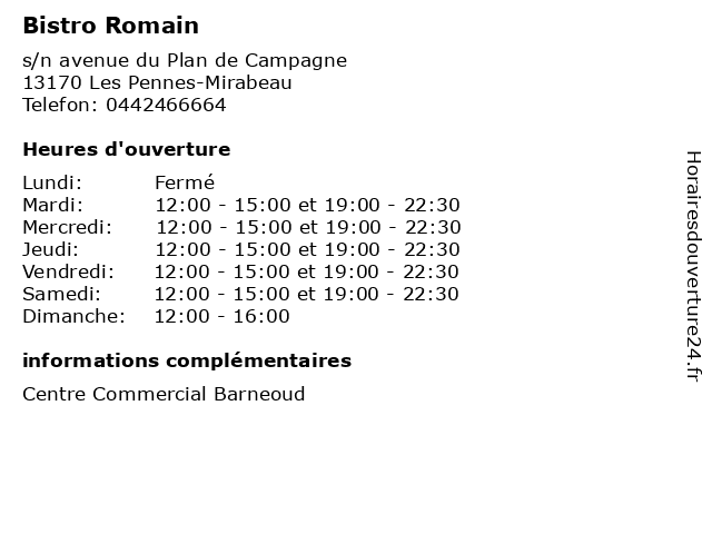 | Mercredi | 12:00-15:00 et 19:00-22:30 |