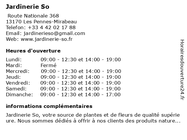 | Samedi | 09:00-12:30 et 14:00-19:00 |