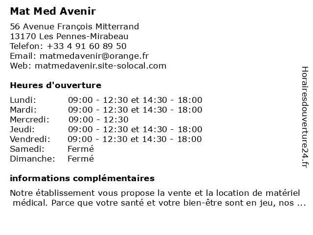 | Lundi | 09:00-12:30 et 14:30-18:00 |